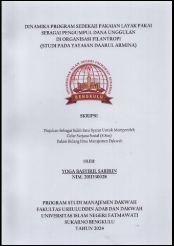 Sabirin, Yoga Basyiril (2024) DINAMIKA PROGRAM SEDEKAH PAKAIAN LAYAK PAKAI SEBAGAI PENGUMPUL DANA UNGGULAN DI ORGANISASI FILANTROPI (STUDI PADA YAYASAN DAARUL ARMINA). Undergraduate(S1) thesis, UIN Fatmawati Sukarno Bengkulu.