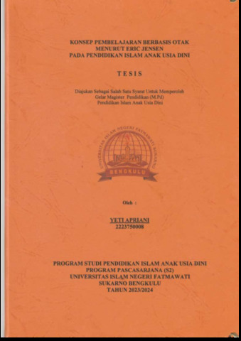 APRIANI, YETI (2024) KONSEP PEMBELAJARAN BERBASIS OTAK MENURUT ERIC JENSEN PADA PENDIDIKAN ISLAM ANAK USIA DINI. Masters(S2) thesis, UIN FAS Bengkulu.