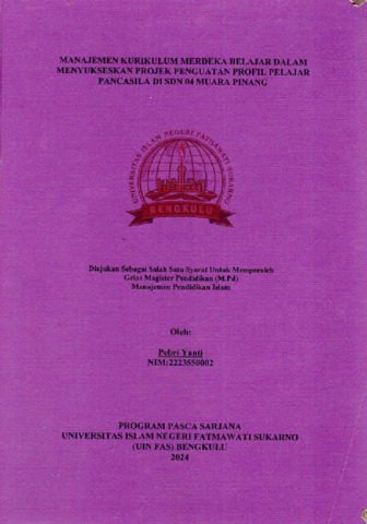 YANTI, FEBRI (2024) MANAJEMEN KURIKULUM MERDEKA BELAJAR DALAM MENYUKSESKAN PROJEK PENGUATAN PROFIL PELAJAR PANCASILA DI SDN 04 MUARA PINANG. Masters(S2) thesis, UIN FAS Bengkulu.
