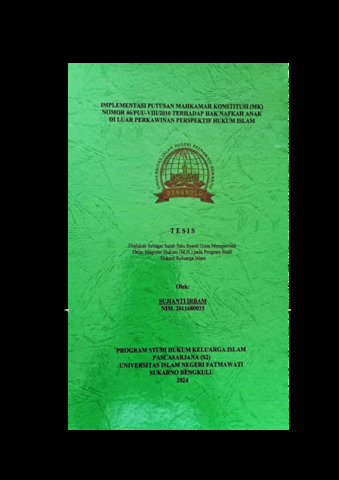 IRBAM, SUJIANTI (2024) IMPLEMENTASI PUTUSAN MAHKAMAH KONSTITUSI (MK) NOMOR 46/PUU-VIII/2010 TERHADAP HAK NAFKAH ANAK DI LUAR PERKAWINAN PERSPEKTIF HUKUM ISLAM. Undergraduate(S1) thesis, UIN Fatmawati Sukarno Bengkulu.