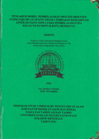 Yolanda, Uci Apriliya (2024) PENGARUH MODEL PEMBELAJARAN PROCESS ORIENTED GUIDE-INQUIRY LEARNING (POGIL) TERHADAP KEMAMPUAN LITERASI SAINS SISWA PADA PEMBELAJARAN IPA KELAS VII DI SMPN 20 KOTA BENGKULU. Undergraduate (S1) thesis, UIN Fatmawari Sukarno.