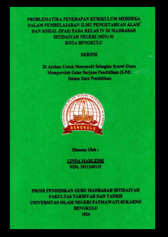 Marlensi, Linda (2024) PROBLEMATIKA PENERAPAN KURIKULUM MERDEKA DALAM PEMBELAJARAN ILMU PENGETAHUAN ALAM DAN SOSIAL (IPAS) PADA KELAS IV DI MADRASAH IBTIDAIYAH NEGERI (MIN) 01 KOTA BENGKULU. Undergraduate(S1) thesis, UIN Fatmawari Sukarno.