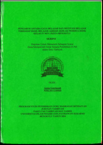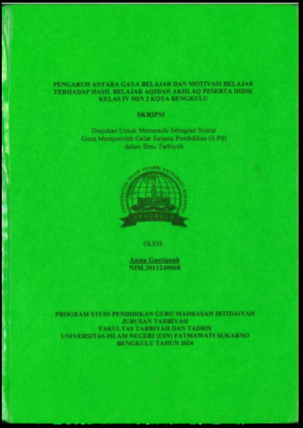 Gustianah, Anisa (2024) PENGARUH ANTARA GAYA BELAJAR DAN MOTIVASI BELAJAR TERHADAP HASIL BELAJAR AQIDAH AKHLAQ PESERTA DIDIK KELAS IV MIN 2 KOTA BENGKULU. Undergraduate(S1) thesis, UIN Fatmawari Sukarno.