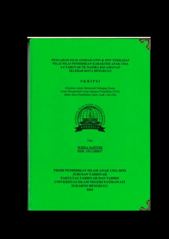 safitri, widia (2023) PENGARUH FILM ANIMASI UPIN & IPIN TERHADAP NILAI NILAI PENDIDIKAN KARAKTER ANAK USIA 4-6 TAHUN DI TK NAZIRA KECAMATAN SELEBAR KOTA BENGKULU. Undergraduate(S1) thesis, UIN Fatmawati Sukarno.