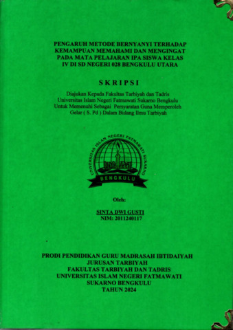 Gusti, Sinta Dwi (2024) PENGARUH METODE BERNYANYI TERHADAP KEMAMPUAN MEMAHAMI DAN MENGINGAT PADA MATA PELAJARAN IPA SISWA KELAS IV DI SD NEGERI 028 BENGKULU UTARA. Undergraduate(S1) thesis, UIN Fatmawari Sukarno.