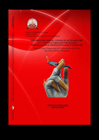 EKTA PRASANDI, BOBY (2024) IMPLEMENTASI UNDANG - UNDANG RI NO 39 TAHUN 2007 TENTANG CUKAI TERHADAP PENGAWASAN PEREDARAN ROKOK PRESPEKTIF SIYASAH TANFIDZIYAH (Studi di Kantor Pengawasan dan Pelayanan Bea dan Cukai Tipe Madya Pabean C Bengkulu). Undergraduate(S1) thesis, UIN Fatmawati Sukarno Bengkulu.