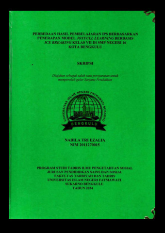 Ezalia,, Nabila Tri (2024) PERBEDAAN HASIL PEMBELAJARAN IPS BERDASARKAN PENERAPAN MODEL JOYFULL LEARNING BERBASIS ICE BREAKING KELAS VII DI SMP NEGERI 16 KOTA BENGKULU. Undergraduate(S1) thesis, UIN Fatmawati Sukarno Bengkulu.