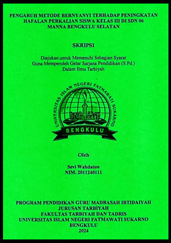 Wahdatun,, Sevi (2024) PENGARUH METODE BERNYANYI TERHADAP PENINGKATAN HAFALAN PERKALIAN SISWA KELAS III DI SDN 06 MANNA BENGKULU SELATAN. Undergraduate(S1) thesis, UIN Fatmawati Sukarno Bengkulu.