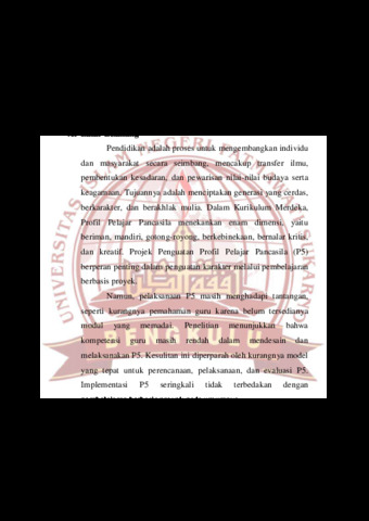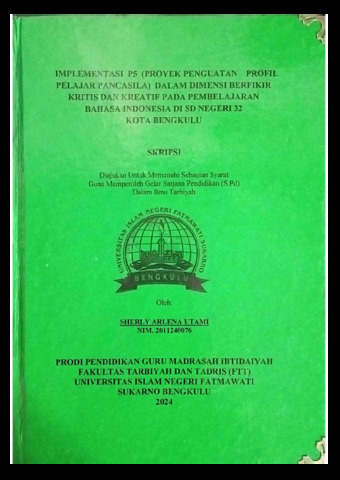 Utami,, Sherly Arlena (2024) IMPLEMENTASI P5 (PROYEK PENGUATAN PROFIL PELAJAR PANCASILA) DALAM DIMENSI BERFIKIR KRITIS DAN KREATIF PADA PEMBELAJARAN BAHASA INDONESIA DI SD NEGERI 32 KOTA BENGKULU. Undergraduate(S1) thesis, UIN Fatmawati Sukarno Bengkulu.