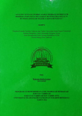 Lestari,, Wahyuni Emilia (2024) ANALISIS TENTANG PEMBELAJARAN BERBASIS KURIKULUM MERDEKA PADA MATA PELAJARAN MATEMATIKA KELAS IV DI SEKOLAH DASAR NEGERI 32 KOTA BENGKULU. Undergraduate(S1) thesis, UIN Fatmawati Sukarno Bengkulu.