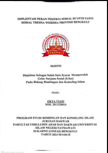 VIANI, OKTA (2024) IMPLENTASI PERAN PEKERJA SOSIAL DI UPTD PANTI SOSIAL TRESNA WERDHA PROVINSI BENGKULU. Undergraduate(S1) thesis, UIN FATMAWATI SUKARNO BENGKULU.