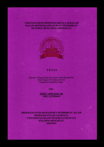 Apriansyah, Zipen (2024) STRATEGI KEPEMIMPINAN KEPALA SEKOLAH DALAM MENINGKATKAN MUTU PENDIDIKAN MI NURUL HUDA KOTA BENGKULU. Masters(S2) thesis, UIN Fatmawati Sukarno Bengkulu.