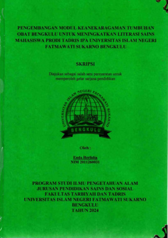 Herlidia,, Enda (2024) Pengembangan Modul Ajar Keanekaragaman Tumbuhan Obat Bengkulu Untuk Meningkatkan Literasi Sains Mahasiswa Prodi Tadris IPA Universitas Islam Negeri Fatmawati Sukarno Bengkulu. Undergraduate(S1) thesis, UIN Fatmawati Sukarno Bengkulu.