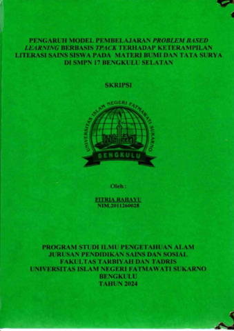 PENGARUH MODEL PEMBELAJARAN PROBLEM BASED LEARNING BERBASIS TPACK TERHADAP KETERAMPILAN LITERASI SAINS SISWA PADA MATERI BUMI DAN TATA SURYA DI SMPN 17 BENGKULU SELATAN