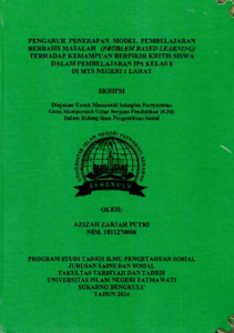 Putri, Azizah Zakiah (2024) PENGARUH PENERAPAN MODEL PEMBELAJARAN BERBASIS MASALAH (PROBLEM BASED LEARNING) TERHADAP KEMAMPUAN BERPIKIR KRITIS SISWA DALAM PEMBELAJARAN IPS KELAS 8 DI MTS NEGERI 1 LAHAT. Undergraduate(S1) thesis, UIN Fatmawati Sukarno Bengkulu.