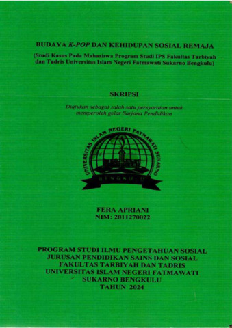 Apriani, Fera (2024) BUDAYA K-POP DAN KEHIDUPAN SOSIAL REMAJA (Studi Kasus Pada Mahasiswa Program Studi IPS Fakultas Tarbiyah dan Tadris Universitas Islam Negeri Fatmawati Sukarno Bengkulu). Undergraduate(S1) thesis, UIN Fatmawati Sukarno Bengkulu.