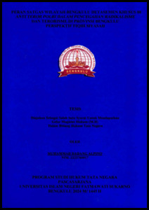 Ada dua persoalan yang dikaji dalam Tesis ini, yaitu: 1. Bagaimana peran satuan Tugas Wilayah Bengkulu Detasemen Khusus 88 Anti Teror Kepolisian Negara Republik Indonesia dalam pencegahan, Radikalisme dan Terorisme di provinsi Bengkulu. 2 Bagaimana kajian Fiqh Siyasah terhadap peran Satuan Tugas Wilayah Bengkulu Detasemen Khusus 88 Anti Teror Kepolisian Negara Republik Indonesia dalam Pencegahan, Radikalisme dan Terorisme di Provinsi Bengkulu. Jenis penelitian ini merupakan penelitian lapangan (field research), yaitu objek penelitian langsung pada Satuan Tugas Wilayah Bengkulu Detasemen Khusus 88 Anti Teror Kepolisian Negara Republik Indonesia dengan menggunakan pendekatan kualitatif, penelitian kualitatif merupakan salah satu prosedur penelitian yang mengasilkan data deskriptif berupa ucapan dari orang-orang yang diamati. Berdasarkan hasil penelitian bahwa, Upaya mencegah meluasnya paham radikal dapat dilakukan melalui pelaksanaan program deradikalisasi, yang bertujuan untuk menghilangkan ideologi ekstrem dari individu dan kelompok yang terpengaruh oleh paham radikal, Implementasinya melibatkan kerja sama dengan tokoh-tokoh masyarakat, adat, dan agama guna memberikan pemahaman yang benar tentang ajaran Islam dan kembali kepada prinsip-prinsip Islam yang hakiki. Menurut Fiqh Siyasah, keadilan adalah prinsip fundamental yang harus diterapkan oleh Pemerintah dalam segala bentuk kebijakan. Dengan demikian, langkah-langkah Satgas Bengkulu dalam menjaga stabilitas dan keamanan wilayahnya melalui pencegahan terorisme merupakan manifestasi dari kewajiban negara dalam mewujudkan maslahah dan mencegah kerusakan (mafsadah) yang lebih besar bagi masyarakat