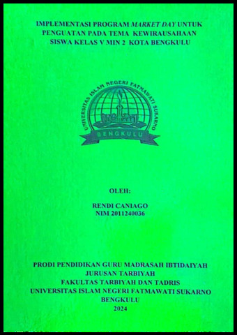 Caniago, Rendi (2024) IMPLEMENTASI PROGRAM MARKET DAY UNTUK PENGUATAN PADA TEMA KEWIRAUSAHAAN SISWA KELAS V MIN 2 KOTA BENGKULU. Undergraduate(S1) thesis, UIN Fatmawati Sukarno Bengkulu.