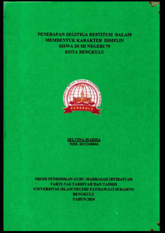Marisa, Selvina (2024) PENERAPAN SEGITIGA RESTITUSI DALAM MEMBENTUK KARAKTER DISIPLIN SISWA DI SD NEGERI 79 KOTA BENGKULU. Undergraduate(S1) thesis, UIN Fatmawati Sukarno Bengkulu.