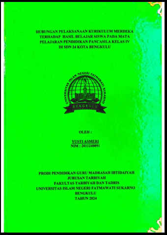 Asmeri, Yusti (2024) HUBUNGAN PELAKSANAAN KURIKULUM MERDEKA TERHADAP HASIL BELAJAR SISWA PADA MATA PELAJARAN PENDIDIKAN PANCASILA KELAS IV DI SDN 24 KOTA BENGKULU. Undergraduate(S1) thesis, UIN Fatmawati Sukarno Bengkulu.