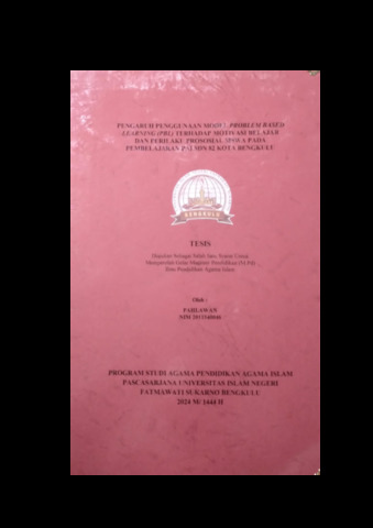 Pahlawan, Pahlawan (2024) PENGARUH PENGGUNAAN MODEL PROBLEM BASED LEARNING (PBL) TERHADAP MOTIVASI BELAJAR DAN PERILAKU PROSOSIAL SISWA PADA PEMBELAJARAN PAI SDN 82 KOTA BENGKULU. Masters(S2) thesis, UIN Fatmawati Sukarno Bengkulu.