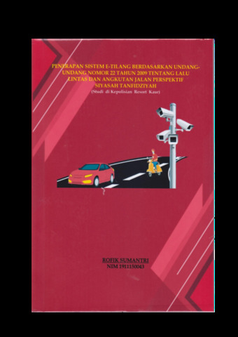 Tujuan Penelituan ini antara lain untuk mengetahui bagaimana pelaksanaan penerapan sistem e-tilang terhadap pelanggaran lalu lintas dikabupaten kaur berdasarkan undang�undang nomor 22 tahun 2009 tentang lalu lintas dan angkutan jalan, dan untuk mengetahui bagaimana tinjauan terhadap penerapan sistem e-tilang menurut ubdang-undang nomor 22 tahun 2009 berdasarkan persepktif siyasah tanfidziyah. Metode penelitian yang digunakan dalam penelitian ini adalah metode penelitian kualitatif dengan jenis penelitian lapangan ( field research). Berdasarkan penelitian yang dilakukan dapat disimpulkan bahwa masyarakat kabupaten kaur belum memiliki kesadaran dalam tertib berlalu lintas, serta sarana dan prasarana dalam menerapkan sistem e-tilang ini masih kurang. Ditinjau dalam pandangan siyasah tanfidziyah terkait penerapan sistem e�tilang merupakan suatu upaya mencegah terjadinya kecelakaan yang berakibat kematian. Allah Swt dalam al-quran dengan tegas mengisyaratkan kepada manusia untuk melindungi diri sendiri dan orang lain. Sebagaimana difirmankan dalam QS. An-Nisa ayat 93.