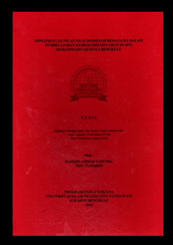 Saputra, Rasidin Ahmad (2024) IMPLEMENTASI NILAI-NILAI MODERASI BERAGAMA DALAM PEMBELAJARAN KEMUHAMMADIYAHAN DI MTS MUHAMMADIYAH KOTA BENGKULU. Masters(S2) thesis, UIN Fatmawati Sukarno Bengkulu.