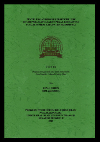 Arifin, Rizal (2024) PENYELESAIAN BEBADE PERSFEKTIF „URF (STUDI PADA MASYARAKAT PEKAL KECAMATAN SUNGAI RUMBAI KABUPATEN MUKOMUKO). Masters(S2) thesis, UIN Fatmawati Sukarno Bengkulu.