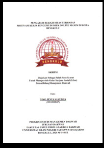 SAYUDHA, NIKO JENUS (2024) PENGARUH RELIGIUSITAS TERHADAP MOTIVASI KERJA PENGEMUDI OJEK ONLINE MAXIM DI KOTA BENGKULU. Undergraduate(S1) thesis, UIN FATMAWATI SUKARNO BENGKULU.