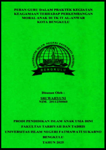 WAHYUNI, SRI (2024) PERAN GURU DALAM PRAKTEK KEGIATAN KEAGAMAAN TERHADAP PERKEMBANGAN MORAL ANAK DI TK IT AL-ANWAR KOTA BENGKULU. Undergraduate(S1) thesis, UIN Fatmawari Sukarno.