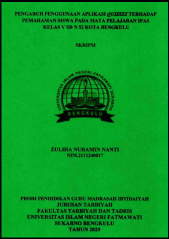 Nanti, Zuliha Nuramin (2025) PENGARUH PENGGUNAAN APLIKASI QUIZIZZ TERHADAP PEMAHAMAN SISWA PADA MATA PELAJARAN IPAS KELAS V SD N 52 KOTA BENGKULU. Undergraduate (S1) thesis, UIN Fatmawati Sukarno Bengkulu.