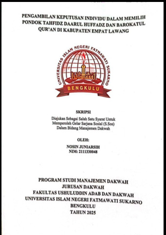 Juniarsi, Nosin (2025) Pengambilan Keputusan Individu dalam Memilih Pondok Tahfidz Daarul Huffadz dan Barokatul Qur’an di Kabupaten Empat Lawang. Undergraduate (S1) thesis, UIN Fatmawati Sukarno Bengkulu.