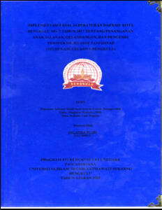 Putri, Ollanisa (2025) IMPLEMENTASI PASAL 16 PERATURAN DAERAH KOTA BENGKULU NO. 7 TAHUN 2017 TENTANG PENANGANAN ANAK JALANAN, GELANDANGAN, DAN PENGEMIS PERSPEKTIF SIYASAH TANFIZIYAH (STUDI KASUS DI KOTA BENGKULU). Magister (S2) thesis, UIN Fatmawati Sukarno Bengkulu.