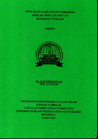 ERDIANSYAH, M. ALIF (2025) PENGARUH GAME ONLINE TERHADAP AKHLAK SISWA DI SMP N 10 BENGKULU TENGAH. Undergraduate (S1) thesis, UIN Fatmawati Sukarno Bengkulu.