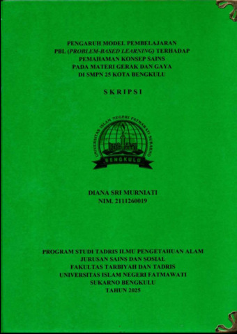 MURNIATI, DIANA SRI (2025) PENGARUH MODEL PEMBELAJARAN PBL (PROBLEM-BASED LEARNING) TERHADAP PEMAHAMAN KONSEP SAINS PADA MATERI GERAK DAN GAYA DI SMPN 25 KOTA BENGKULU. Undergraduate (S1) thesis, UIN Fatmawati Sukarno Bengkulu.