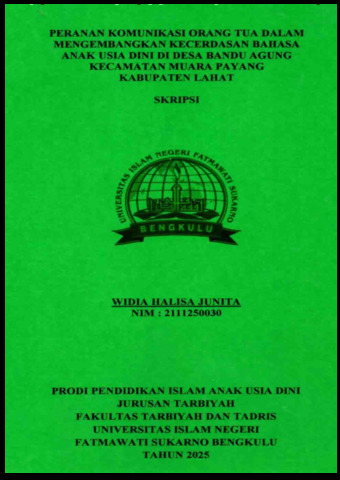 JUNITA, WIDIA HALISA (2025) PERANAN KOMUNIKASI ORANG TUA DALAM MENGEMBANGKAN KECERDASAN BAHASA ANAK USIA DINI DI DESA BANDU AGUNG KECAMATAN MUARA PAYANG KABUPATEN LAHAT. Undergraduate (S1) thesis, UIN Fatmawati Sukarno Bengkulu.