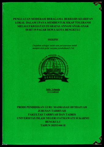 Yolanda, Selly (2025) PENGUATAN MODERASI BERAGAMA BERBASIS KEARIFAN LOKAL DALAM UPAYA MEMBENTUK SIKAP TOLERANSI MELALUI KEGIATAN SYARAFAL ANNAM ANAK-ANAK DI RT 19 PAGAR DEWA KOTA BENGKULU. Undergraduate (S1) thesis, UIN Fatmawati Sukarno Bengkulu.