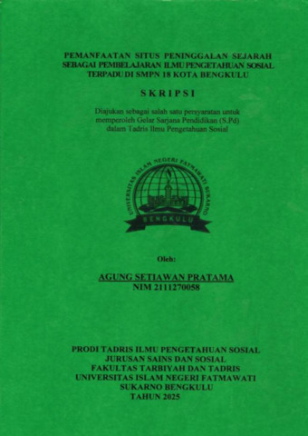 PRATAMA, AGUNG SETIAWAN (2025) PEMANFAATAN SITUS PENINGGALAN SEJARAH SEBAGAI PEMBELAJARAN ILMU PENGETAHUAN SOSIAL TERPADU DI SMPN 18 KOTA BENGKULU. Undergraduate (S1) thesis, UIN Fatmawati Sukarno Bengkulu.