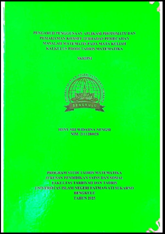 NENGSI, HENY SRI WIDARNA (2025) PENGARUH PENGGUNAAN APLIKASI PHOTOMATH DAN PEMAHAMAN KONSEP TERHADAP PEMECAHAN MASALAH MATEMATIS PADA MATA KULIAH KALKULUS PRODI TADRIS MATEMATIKA. Undergraduate (S1) thesis, UIN Fatmawati Sukarno Bengkulu.