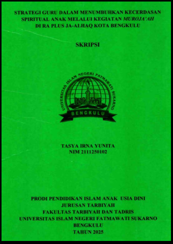 Yunita, Tasya Irna (2025) STRATEGI GURU DALAM MENUMBUHKAN KECERDASAN SPIRITUAL ANAK MELALUI KEGIATAN MUROJA’AH DI RA PLUS JA-ALHAQ KOTA BENGKULU. Undergraduate (S1) thesis, UIN Fatmawati Sukarno Bengkulu.