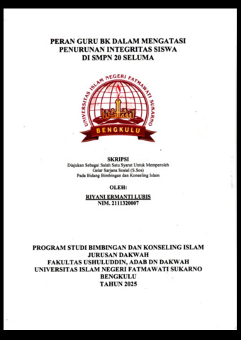 LUBIS, RIYANI ERMANTI (2025) PERAN GURU BK DALAM MENGATASI PENURUNAN INTEGRITAS SISWA DI SMPN 20 SELUMA. Undergraduate (S1) thesis, UIN Fatmawati Sukarno Bengkulu.