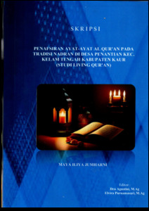 Penelitian ini dilatarbelakangi oleh beragam cara masyarakat dalam menggunakan ayat- ayat Al-Qur‟an dalam kehidupan sehari-hari. Salah satunya penggunaan ayat-ayat Al- Qur‟an pada tradisi Nadran. Oleh karena itu, penelitian ini mengkaji: Apa ayat-ayat Al- Qur‟an yang digunakan dalam tradisi Nadran? bagaimana penafsiran ayat-ayat Al-Qur‟an yang digunakan dalam tradisi Nadran? Dan Bagaimana pengaplikasian living qur‟an dalam ayat-ayat yang digunakan di tradisi Nadran. Tujuan penelitian ini adalah untuk mengindetifikasi ayat-ayat Al-Qur‟an yang digunakan dalam tradisi Nadran, untuk menganalis tafsiran ayat-ayat Al-Qur‟an dalam tradisi Nadran di Desa Penantian Kabupaten Kaur, dan untuk mengeksplorasi pengaplikasian living qur‟an dalam ayat-ayat yang digunakan di tradisi Nadran. Penelitian ini menggunakan metode kualitatif dan deskriptif serta termasuk dalam jenis penelitian lapangan. Penelitian ini bersifat eksploratif subyektif, yang mencakup seluruh fenomena yang terjadi di lapangan dengan tujuan memahami lebih dalam latar belakang dan kondisi saat ini. Berdasarkan penelitian yang telah peneliti lakukan ditemukan bahwa: pertama, ayat-ayat Al-Qur'an yang digunaka pada tradisi Nadran di Desa Penantian adalah : QS. Al-Baqarah ayat 152, 255, dan 286. Kedua, Penafsiran ayat-ayat Al-Qur‟an yang digunakan pada tradisi Nadran yaitu : Surah Al-Baqarah Ayat 152: Menekankan rasa syukur dan kelancaran ritual. Surah Al-Baqarah Ayat 255 (Ayat Kursi): Sebagai permohonan perlindungan dari bahaya dan pengakuan atas kekuasaan Allah. Surah Al-Baqarah Ayat 286: Mengajarkan permohonan ampunan, kemudahan dalam menjalani hidup, dan ketabahan menghadapi cobaan. Ketiga, Pengaplikasian Living Qur'an dalam ayat-ayat tersebut terlihat dari cara masyarakat Desa Penantian menghidupkan ajaran Al-Qur'an dalam kehidupan sehari-hari melalui tradisi Nadran. QS. Ayat 152 digunakan : Sebagai ungkapan rasa syukur atas nikmat Allah. Dan Dibaca saat doa bersama dalam ritual Nadran, QS. Ayat 25 digunakan: Untuk memohon perlindungan Allah dari bahaya fisik (badai) dan gangguan gaib. dan dibaca sebelum beraktivitas. QS. Ayat 286 digunakan: Memohon kemudahan, kekuatan, dan ampunan untuk mengatasi tantangan dalam kehidupan dan Dibaca saat penutup Nadran sebagai bagian dari doa agar hajatan berjalan lancar dan keberkahan melimpah