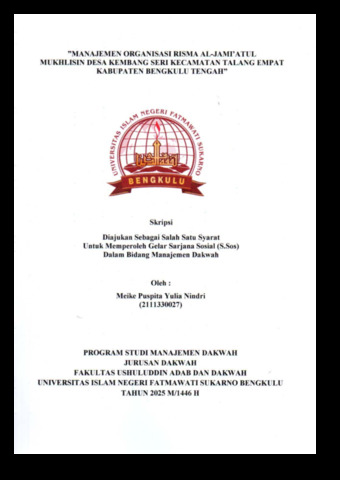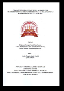 Yulia,, Meike Puspita (2025) ”MANAJEMEN ORGANISASI RISMA AL-JAMI’ATUL MUKHLISIN DESA KEMBANG SERI KECAMATAN TALANG EMPAT KABUPATEN BENGKULU TENGAH”. Undergraduate (S1) thesis, UIN Fatmawati Sukarno Bengkulu.