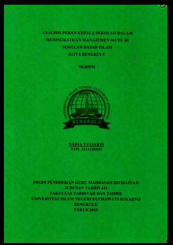 YULIARTI, NADIA (2025) ANALISIS PERAN KEPALA SEKOLAH DALAM MENINGKATKAN MANAJEMEN MUTU DI SEKOLAH DASAR ISLAM KOTA BENGKULU. Undergraduate (S1) thesis, UIN Fatmawati Sukarno Bengkulu.
