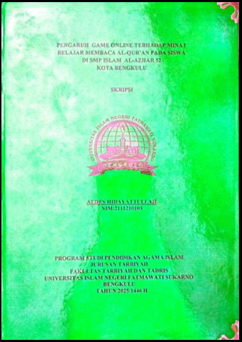Hidayattullah, Aldes (2025) Pengaruh Game Online Terhadap Minat Belajar Membaca AL-qur‟an Pada Siswa Di SMP Islam Al-azhar 52 Kota Bengkulu. Undergraduate (S1) thesis, UIN Fatmawati Sukarno Bengkulu.