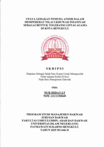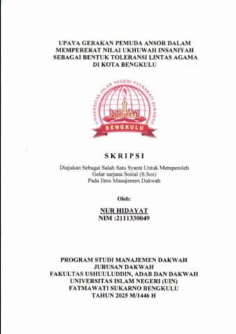 HIDAYAT, NUR (2025) UPAYA GERAKAN PEMUDA ANSOR DALAM MEMPERERAT NILAI UKHUWAH INSANIYAH SEBAGAI BENTUK TOLERANSI LINTAS AGAMA DI KOTA BENGKULU. Undergraduate (S1) thesis, UIN Fatmawati Sukarno Bengkulu.
