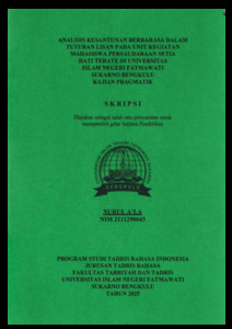 Penelitian berjudul “Analisis Kesantunan Berbahasa Dalam Tuturan Lisan Pada Unit Kegiatan Mahasiswa Persaudaraan Setia Hati Terate di Universitas Islam Negeri Fatmawati Sukarno Bengkulu: Kajian Pragmatik”, bertujuan untuk mengetahui bagaimana klasifikasi kesantunan berbahasa yang terdapat dalam proses latihan Unit Kegiatan Mahasiswa (UKM) Persaudaraan Setia Hati Terate (PSHT) Di Universitas Islam Negeri Fatmawati Sukarno Bengkulu. Jenis penelitian ialah Kualitatif, hasil penelitian dikumpulkan melalui cara pengumpulan data; Pengamatan, Rekam, Wawancara, dan Dokumentasi. Hasil dalam penelitian ialah tuturan yang didapat selama penelitian dianalisis menggunakan Maksim Kesantunan Berbahasa Teori Leech. Hasil penelitian dapat diambil kesimpulan bahwa tuturan dari tindak komunikasi dalam Unit Kegiatan Persaudaraan Setia Hati Terate di Universitas Famawati Sukarno Bengkulu sudah santun yang terbukti melalui pelaksanaan dan penggunaan Maksim Kesantunan Berbahasa. Ditemukan 5 Percakapan yang menggunakan Maksim Kebijaksanaan, 4 percakapan yang menggunakan Maksim Kedermawanan, 6 percakapan yang menggunakan Maksim Penghargaan, 2 Percakapan yang menggunakan Maksim Kesederhanaan, 5 percakapan yang menggunakan Maksim Kecocokan, dan 1 percakapan yang menggunakan Mkasim Kesimpatian.
