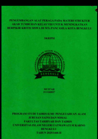 MUTI’AH, MUTI’AH (2025) PENGEMBANGAN ALAT PERAGA PADA MATERI STRUKTUR AKAR TUMBUHAN KELAS VIII UNTUK MENINGKATKAN BERPIKIR KRITIS SISWA DI MTs PANCASILA KOTA BENGKULU. Undergraduate (S1) thesis, UIN Fatmawati Sukarno Bengkulu.