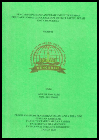 SARI, YOSI RETNO (2025) PENGARUH PERMAINAN PETAK UMPET TERHADAP PERILAKU SOSIAL ANAK USIA DINI DI TK IT BAITUL IZZAH KOTA BENGKULU. Undergraduate (S1) thesis, UIN Fatmawati Sukarno Bengkulu.