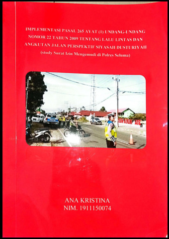 KRISTINA, ANA (2025) IMPLEMENTASI PASAL 265 AYAT (1) UNDANG-UNDANG NOMOR 22 TAHUN 2009 TENTANG LALU LINTAS DAN ANGKUTAN JALAN PERSPEKTIF SIYASAH DUSTURIYAH (study Surat Izin Mengemudi di Polres Seluma). Undergraduate (S1) thesis, UIN Fatmawati Sukarno Bengkulu.
